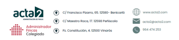 Para cualquier consulta no urgente, Acta2 le recibirá los martes de 12:00 a 14:00 con cita previa. Le rogamos indicar el motivo de su visita para poder prepararla adecuadamente.